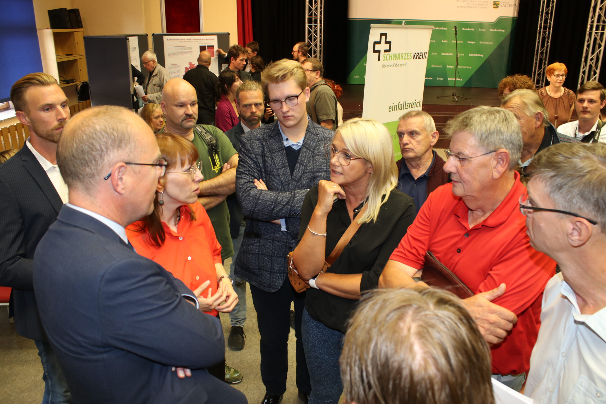 Im regen Austausch standen BfZ-Stadträtin Grit Fischer und BfZ-Stadtrat Tristan Drechsel mit Justizministerin Katja Meier und Frau Langer, der Marketingreferentin Gitterladen JVA Zwickau. In dem Format der Veranstaltung konnte jedoch unser politisches Anliegen, dass das Land mehr für die dringenden Investitionsnotwendigkeiten in Zwickau tun muss, um etwas Frieden zu stiften, nicht platziert werden.
