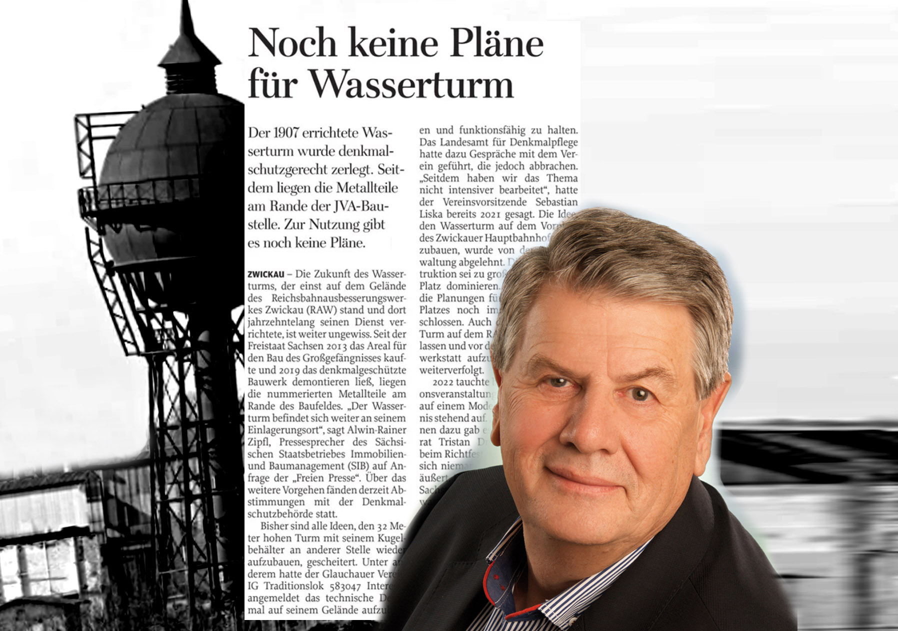 Zwickau – Die Zukunft des Wasserturms, der einst auf dem Gelände des Reichsbahnausbesserungswerkes Zwickau (RAW) stand und dort jahrzehntelang seinen Dienst verrichtete, ist weiter ungewiss. Seit der Freistaat Sachsen 2013 das Areal für den Bau des Großgefängnisses kaufte und 2019 das denkmalgeschützte Bauwerk demontieren ließ, liegen die nummerierten Metallteile am Rande des Baufeldes. „Der Wasserturm befindet sich weiter an seinem Einlagerungsort“, sagt Alwin-Rainer Zipfl, Pressesprecher des Sächsischen Staatsbetriebes Immobilien- und Baumanagement (SIB) auf Anfrage der „Freien Presse“. Über das weitere Vorgehen fänden derzeit Abstimmungen mit der Denkmalschutzbehörde statt.