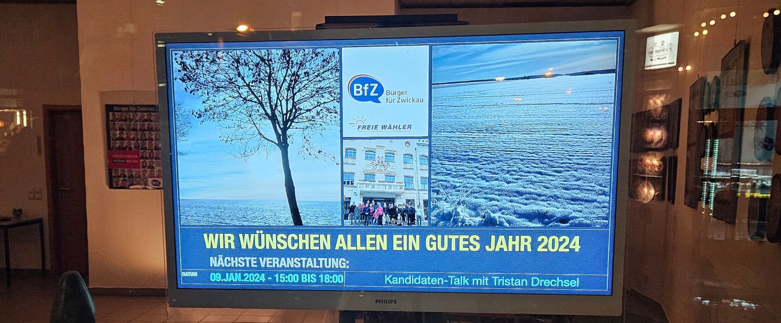 Das nächste Mal treffen wir uns am 9. JANUAR 2024 von 15 – 18 Uhr in unserer Bürgerwerkstatt der Bürger für Zwickau in der Inneren Schneeberger Straße 12. Wir freuen uns auf Sie. Nächstes Kandidaten-Treffe