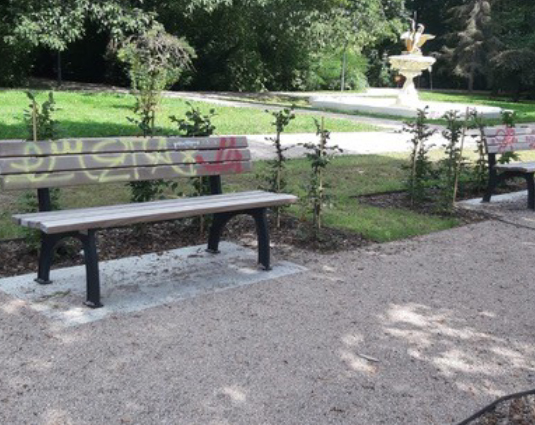 Seit der Wiedereröffnung des rekonstruierten Parks gab es erste Fälle von Schmierereien an den Bänken.